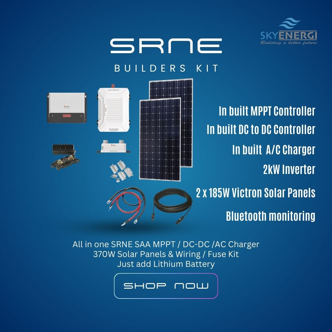 Victron 370 Watt Solar Panel - 2kW Inverter - SRNE 40A MPPT - Skyenergi 230Ah Lithium Battery - Battery Shunt