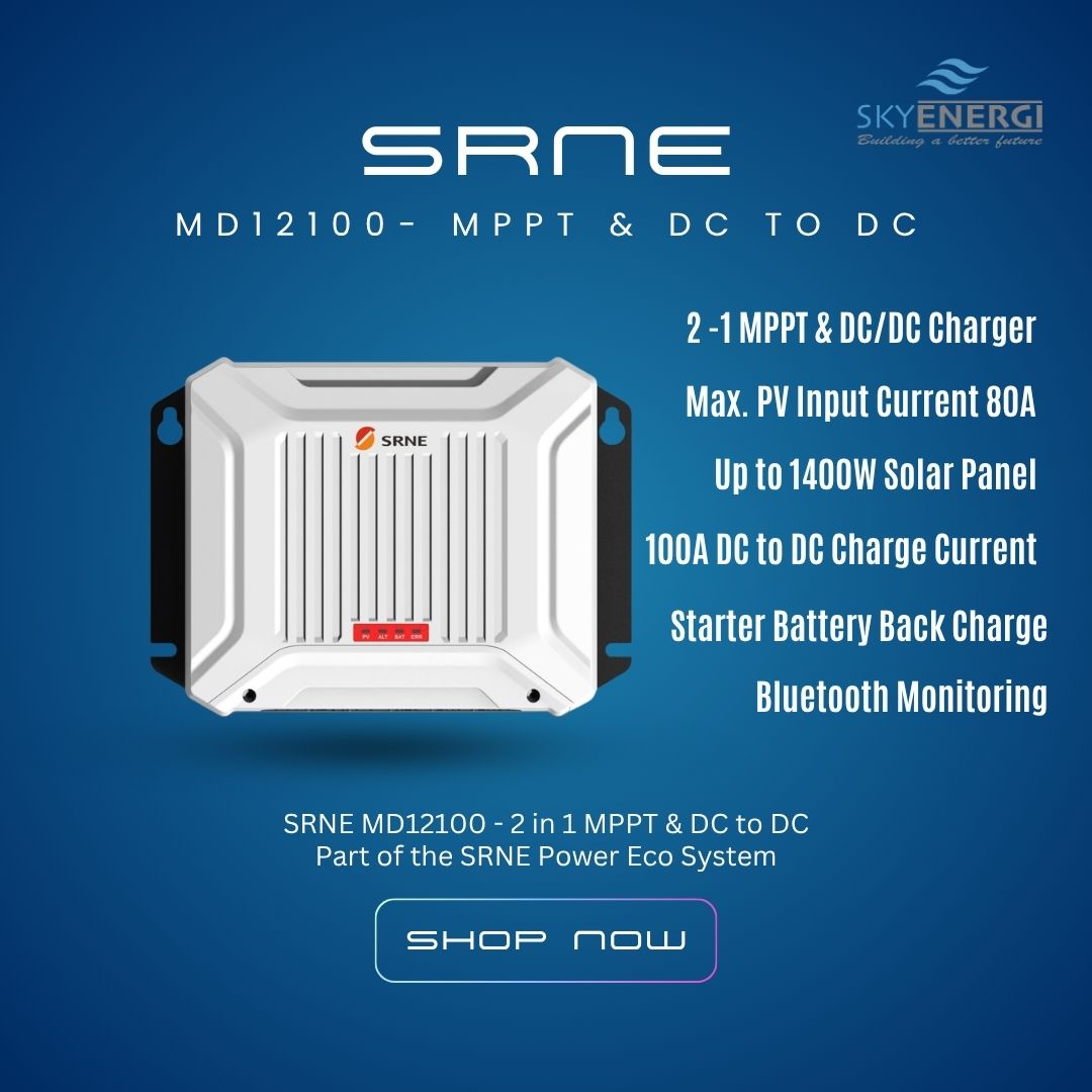 The SRNE MD12100is a high-efficiency, multi-stage DC-DC charger and MPPT solar charge controller designed for dual-battery systems in...Regular price £425.00Sale price £425.00 Regular priceUnit price per£0.00 -