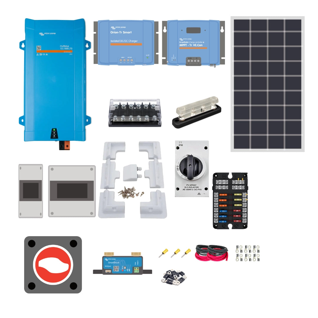 Camper Van Kit - Solar Power & Electrics System - 1600VA Inverter/Charger, Battery to Battery Charger, Monitoring. (Non Can Bus)