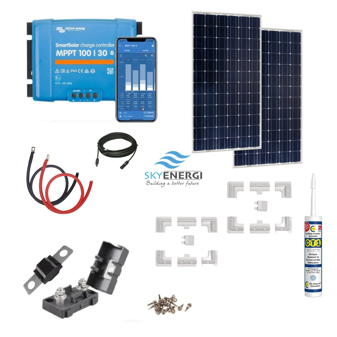 Victron 370 Watt Solar Panel & Victron Smart MPPT Charge Controller, Cable, Mounting & Gland.