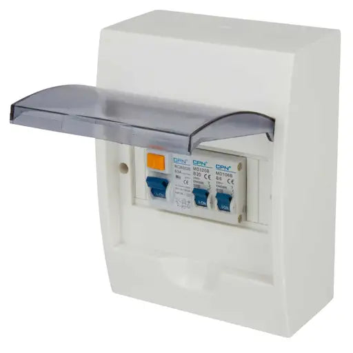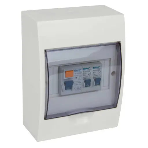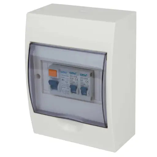 A robust and compact power distribution solution designed for caravans, motorhomes, and mobile installations. This consumer unit includes a 25A RCD with pre-installed 16A and 6A double pole MCBs, ensuring compliance with BS electrical standards.