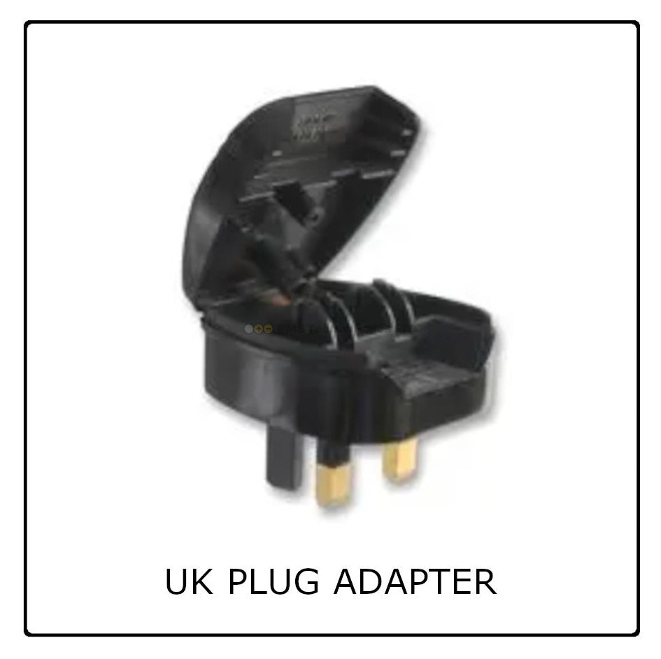 This unit has the NEMA 1-15P plug but comes with a UK plug adapter
