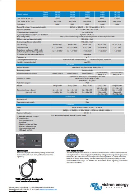 The full bridge plus toroidal transformer topology has proven its reliability over many years. The Phoenix Inverter 48/250 VE.Direct are short circuit proof and protected against overheating, whether due to overload or high ambient temperature.