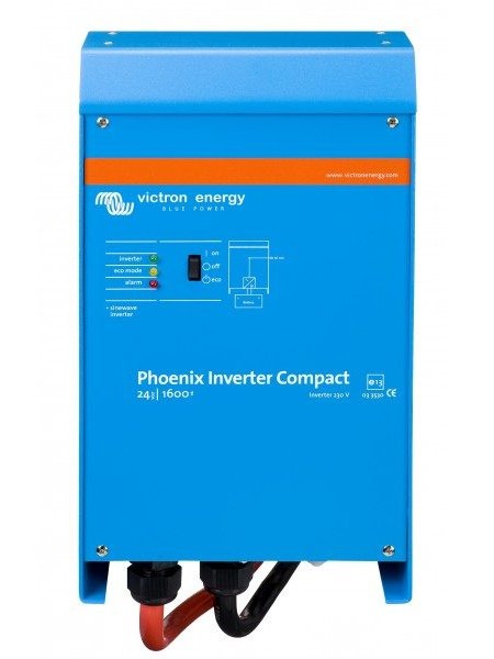 The Phoenix Inverter Compact 24/1600 is a pure sine wave inverter with a high efficiency. It is developed for professional duty and suitable for the wide range of applications.